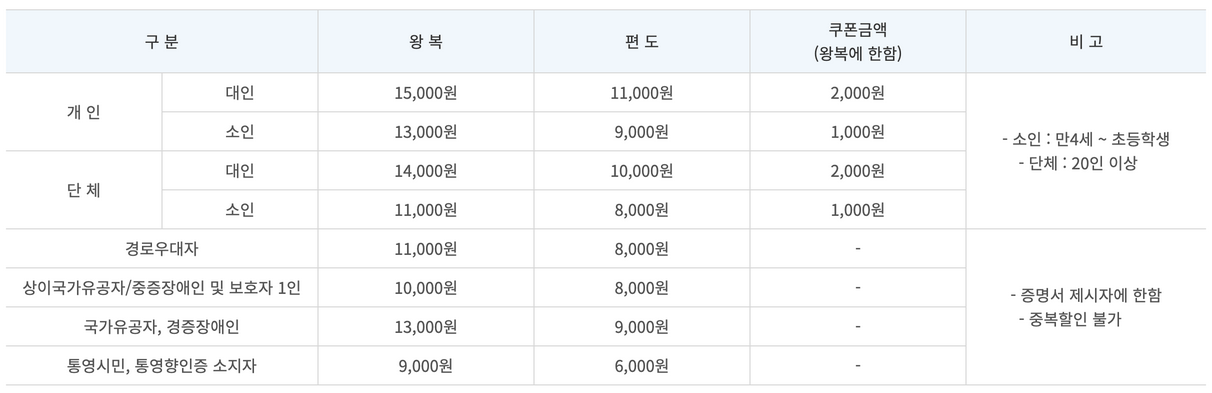 - 어린이(만 6세 ~ 만 12세) : 10,000원